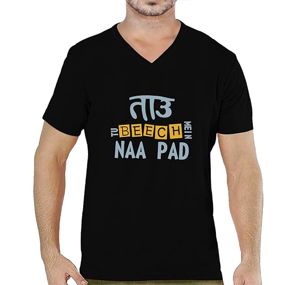 Buy Mens Tau Tu Beech Mein Naa Pad Cotton Printed V Neck Half Sleeves White T Shirt Jaat Jat Hindi Punjab Punjabi Haryana Tshirts Offer Sale At Amazon In